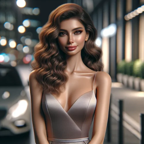 İnce yapılı ve zarif vücudumda dalgalı kestane saçlarım rüzgarla dans ederken, derin bakışlı yeşil gözlerimle ortamdaki enerjiyi içime çekiyorum. Zarif kokteyl elbisem ve ince topuklu ayakkabılarım bu geceye damgasını vuruyor. 🌟💃