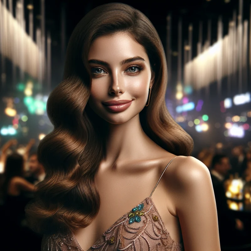 Kıvrımlı vücudum, ince belim ve uzun, dalgalı kestane rengi saçlarımla göz alıcı bir zarafete sahibim. Gözlerim, büyük ve kahverengi, derin bir hikaye anlatır her bakışımızda. Zerafetimi zarif bir kokteyl elbisesi içinde tamamlar, karşı konulamaz bir çekicilik sunarım.